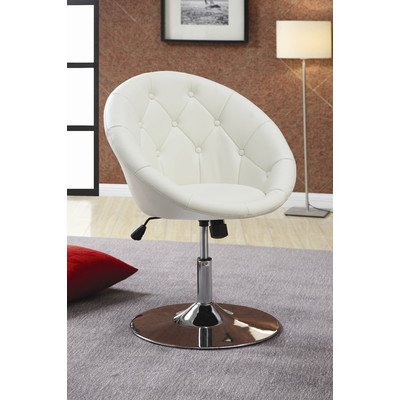 Button tufted swivle chair in leather-like vinyl with chrome base. Can adjust in height and tilt.